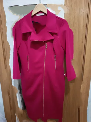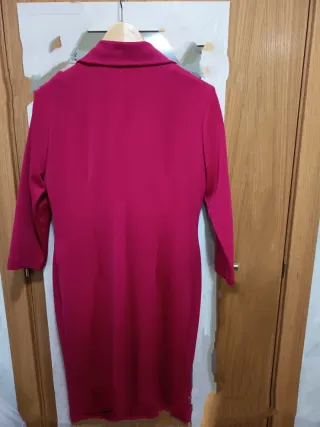 Vestido de color fucsia con un diseño elegante. - Corte recto. - Cuello tipo solapa. - Manga semi
