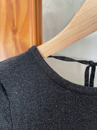 Vestido de Bershka con un tejido brillante que capta la luz. Su diseño es elegante y moderno. - Manga larga. - Cuello redondo con detalle de lazada en la espalda. - Corte ajustado.