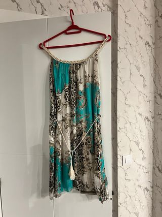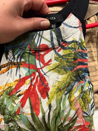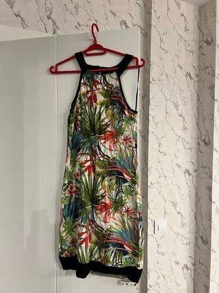 Vestido con estampado floral y cuello halter. - Diseño con flores y hojas. - Detalle en cuello y bajo. pone 40 pero da una m