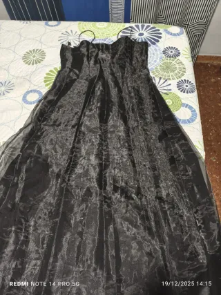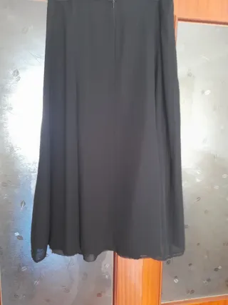 Elegante falda larga negra, ideal para eventos o para vestir. - Diseño fluido y vaporoso. - Tejido ligero . - Tiene roto el forro por debajo en un lado, pero no se aprecia por fuera