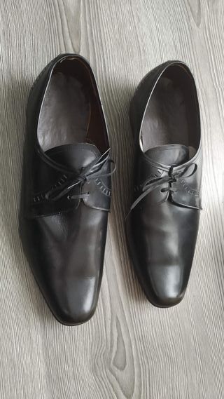 NO HAGO ENVIOS Elegantes zapatos de vestir para caballero en color negro. Perfectos para eventos o el día a día. - Cierre con cordones. - Diseño clásico y sofisticado. - Talla 43.