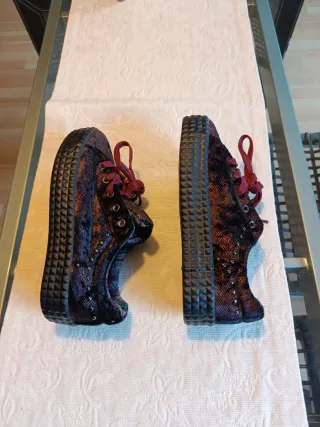 Elegantes deportivas con un diseño llamativo. - Acabado aterciopelado con detalles brillantes. - Cordones a tono. - Suela gruesa con relieve.