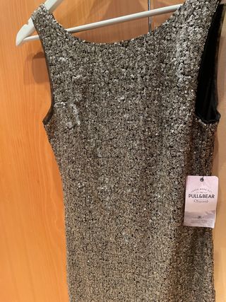 Vestido lentejuelas Pull&Bear dorado/plateado