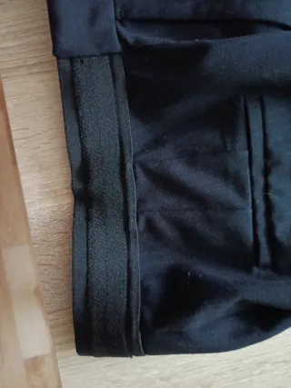 Pantalón negro elegante de pinzas, corte recto y con caída. Viene con un cinturón. Las fotos son de mala calidad