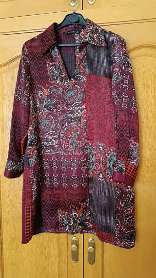 Vestido o bata con un bonito estampado. - Talla XL. - Diseño con cuello. - Cierre de botones.