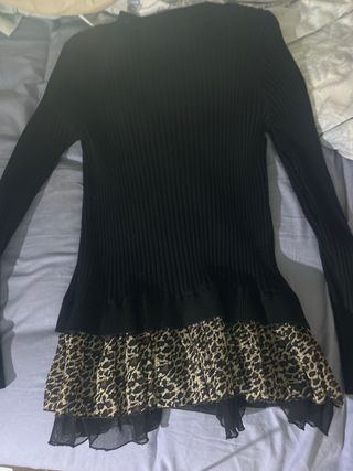 Top negro con volante de leopardo
