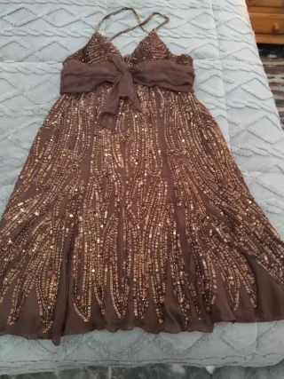 Vestido marrón con lentejuelas doradas