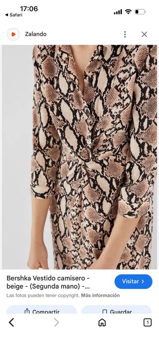 Vestido camisero de Zara con estampado geométrico en tonos verdes y beige. Cuenta con cinturón para ajustar a la cintura. - Manga larga. - Cuello camisero. - Cierre de botones. - Cinturón a juego.