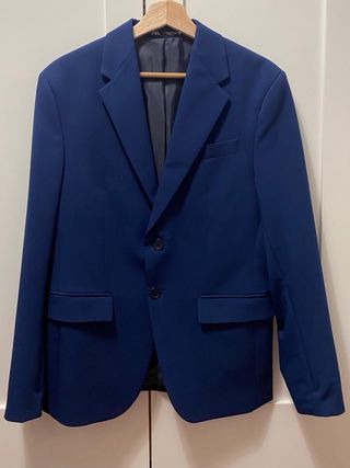 Americana de Massimo Dutti en tono azul, con detalles de coderas en marrón. - Diseño clásico. - Cierre de botones. - Bolsillos frontales.