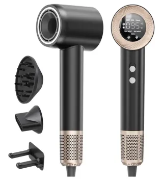 Secador con diseño moderno y elegante. - Color negro y detalles dorados. - Incluye varios accesorios para diferentes estilos de peinado (Difusor y Boquilla) - 59 dB de Ruido Bajo - Motor Sin Escobillas de 140.000 RPM - 4 Temperaturas y 2 Velocidades Precio en Amazon 54'99€, aunque ahora (enero 2026) en oferta 49'63€. Ver última foto Lo vendo porque, por error, me han llegado dos.