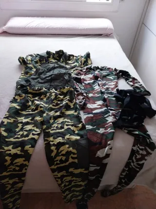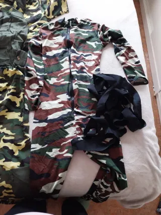 Conjunto de disfraz militar con estampado de camuflaje Talla mujer L Talla hombre S (es grande) LOS DOS DISFRACES 15 eur - Diseño de camuflaje en tonos verdes y marrones. - Talla única adaptable.