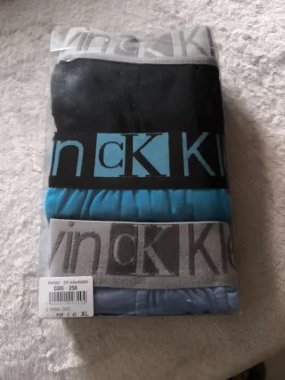 Pack de boxers Calvin Klein. - Talla XL, pero tallaje pequeño. - Colores: negro, azul y gris.