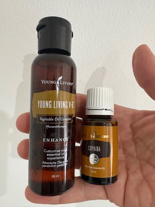 Set de aceites esenciales Young Living. - Aceite V-6 Vegetable Oil Complex de 58 ml. - Aceite esencial de Copaiba de 15 ml.