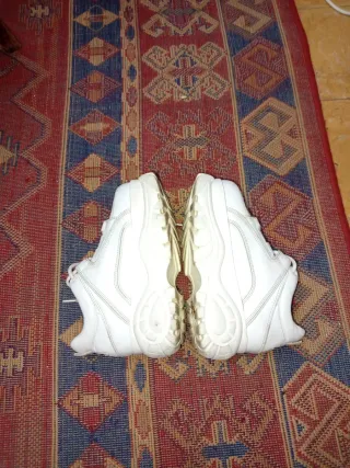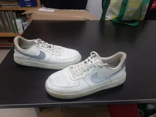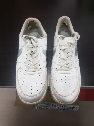 Zapatillas deportivas Nike Air Force 1. No son originales. Tienen bastante uso, pero aún están bien. - Diseño clásico en color blanco con detalles plateados. - Suela de goma. - Cierre con cordones.