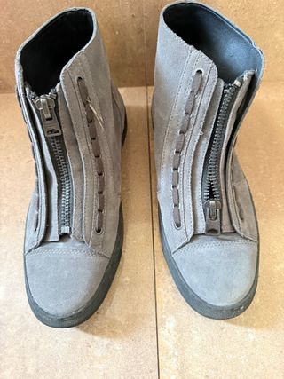 Botas de caña alta con un diseño moderno y detalles de cremallera. están usadas 2 veces - Material exterior de ante. - Cierre principal con cremallera. - Detalle de cordones. - Suela de goma.
