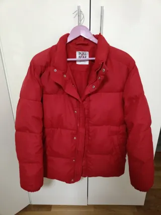 Anorak acolchado de la marca Pull & Bear en color rojo. Es una prenda de abrigo con un diseño moderno y cómodo. - Cierre de cremallera y botones a presión. - Cuello alto. - Bolsillos laterales.