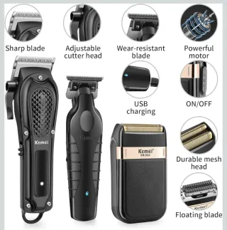 Este cortapelos profesional Kemei es una herramienta versátil para el cuidado personal. - Cuchilla afilada y resistente al desgaste. - Cabezal de corte ajustable. - Motor potente. - Carga USB. - Interruptor ON/OFF. - Malla duradera. - Cuchilla flotante.