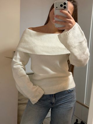 Jersey negro con un diseño llamativo en blanco. - Cuello redondo. - Manga larga. - Tejido suave al tacto.