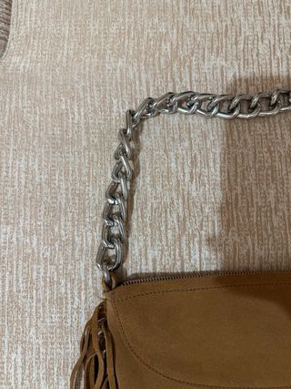 Bolso de estilo bohemio con flecos largos y una cadena plateada. - Material: ante. - Diseño con flecos. - Cadena metálica para llevar al hombro.
