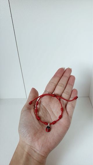 Pulsera de hilo rojo con un charm de mariquita. El diseño de 7 nudos es un clásico. - Cierre ajustable. - Detalle de mariquita esmaltada.