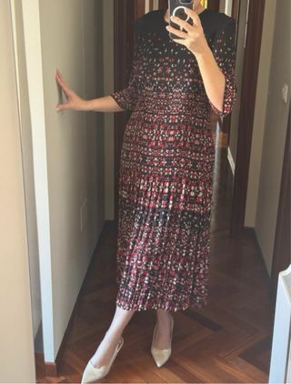 Vestido burdeos rojo M 38 escote en pico Zara