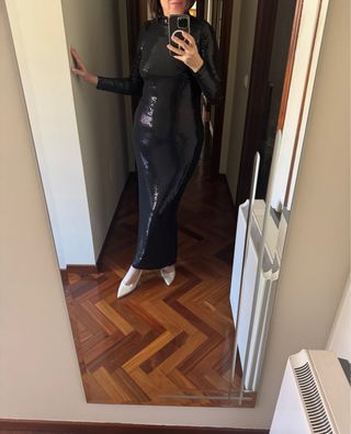 Vestido largo negro lentejuelas