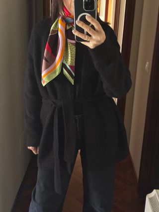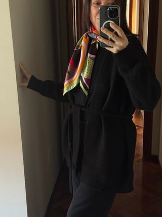 Chaqueta de punto de Adolfo Dominguez en color negro. Es una prenda versátil y elegante. - Diseño con cinturón para ajustar a la cintura. - - Manga larga.