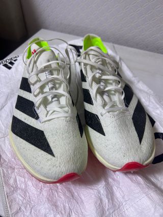 Zapatillas de atletismo con clavos. - Talla 40 2/3 - Placa de carbono y nailon: propulsión potente - Se venden porque solo se usaron para una prueba de oposiciones - Se usaron 3 veces, ver foto del interior. Están en perfecto estado - Espuma ligera Lightstrike en la planta del pie para reducir el impacto