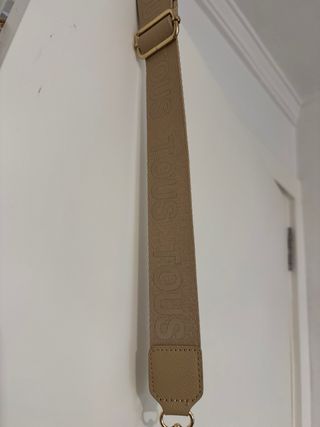 Bolso de la marca Tous en color beige. Presenta el nombre de la marca en relieve en la solapa frontal. - Correa ajustable con el logo de Tous. - Cierre de solapa.
