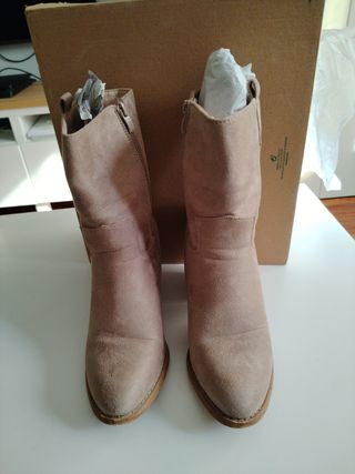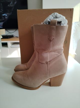 Botas de estilo casual en color camel. El material exterior es ante. - Cierre de cremallera lateral. - Tacón bajo y ancho. - Punta fina.