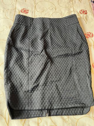 Elegante falda midi de Massimo Dutti con un diseño texturizado y cierre de cremallera. - Diseño jacquard con pequeños círculos. - Cremallera oculta en la parte trasera. - Corte recto. - Abertura lateral en el bajo.
