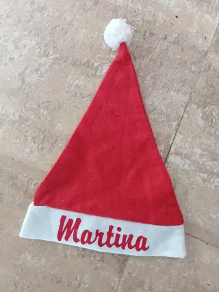 Gorro de Papá Noel con el nombre 'Martina' estampado. - Gorro de fieltro rojo. - Banda blanca en la base. Ancho 24 cm - Pompón blanco en la punta.