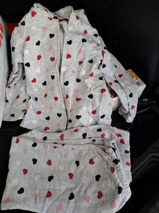 Conjunto de chándal para niña con estampado de corazones. - Sudadera con cremallera. - Pantalón con cintura elástica.