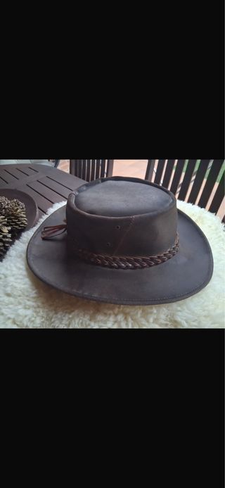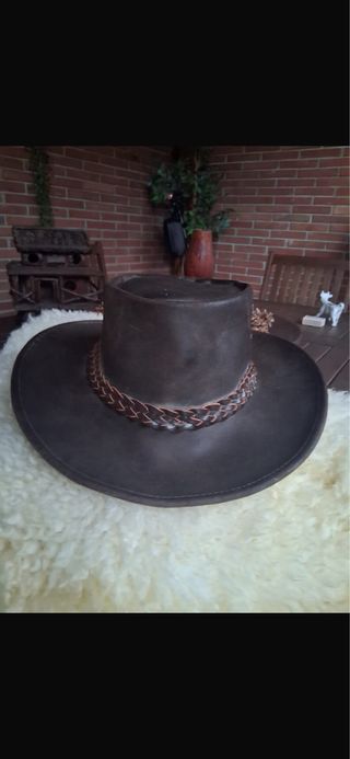Sombrero de piel con un diseño clásico y atemporal. Perfecto para complementar cualquier atuendo. - Material: Piel - Adorno trenzado en la base de la copa - Detalle de flecos en un lateral
