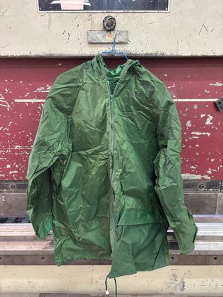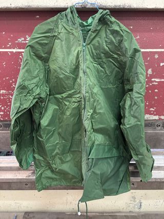 Conjunto impermeable de estilo vintage. - Diseño con capucha. - Cierre de cremallera frontal. - Cordón ajustable en el bajo.