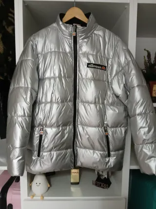 Plumón unisex de la marca Ellesse en color plateado. Es una prenda acolchada y brillante, perfecta para mantenerte abrigado con estilo. - Diseño acolchado. - Cremallera frontal. - Bolsillos laterales con cremallera.