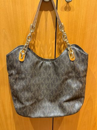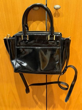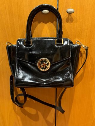 Elegante bolso de Michael Kors con acabado brillante. - Material: charol. - Color: negro. - Diseño moderno y sofisticado.