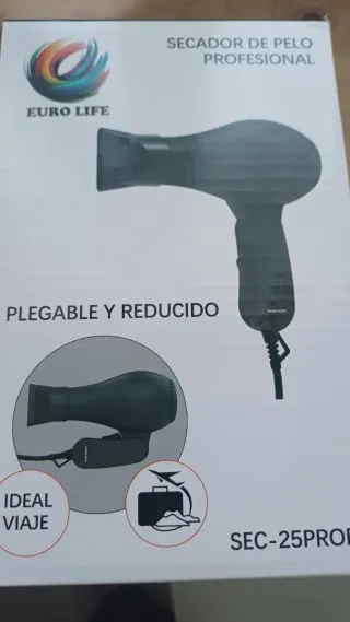 Secador de pelo profesional plegable y reducido, ideal para viajes. - Diseño compacto y ligero. - Mango plegable para fácil almacenamiento. - Incluye accesorio concentrador.
