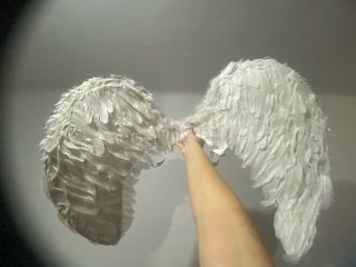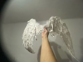 Estas alas de ángel son un accesorio llamativo para disfraces o eventos. - Diseño de plumas blancas. - Talla única. -Capa blanca con toque brillante. Talla M La capa tiene los agujeros hechos para poner los tirantes de las alas. Alas blancas tengo dos juegos. Les falta alguna pluma pero están bien