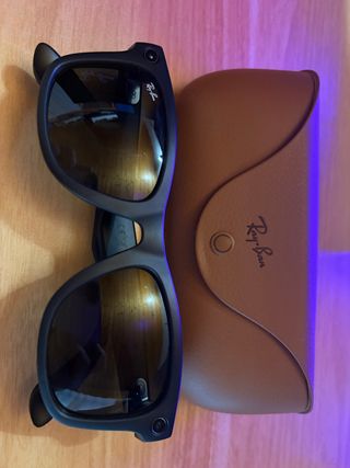 Gafas de sol Ray-Ban Meta Wayfarer 2 en color negro. Compradas en octubre, las vendo por falta de uso, ESTAN GRADUADAS, cambiar cristal son 30-40€, ticket de compra y bolsa - Montura negra mate - Lentes tintadas. - estuche limpieza