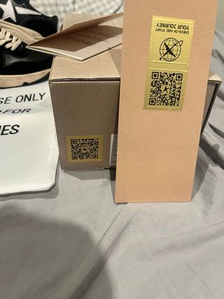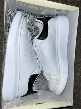 Caja de la marca Alexander McQueen. - Diseño en blanco con detalles rojos. - Estampado del logo de la marca.