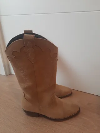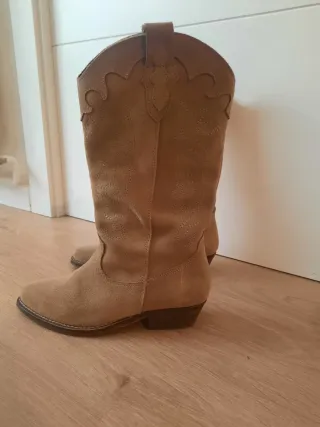 Botas de piel de ante en color marrón camel, preciosas pasta llevar con vestidos.] Dos usos.
