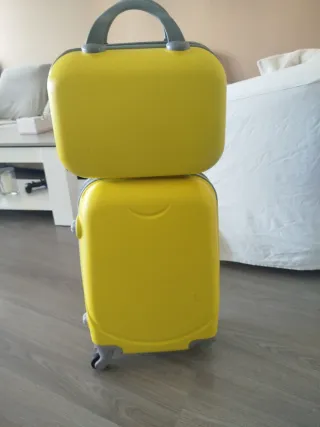Maleta de viaje compacta y resistente, perfecta para llevar tus pertenencias. Falta una rueda que se perdió en un viaje , se puede comprar y poner ya que se pueden poner y quitar fácilmente. Medidas 45*35*20 - Diseño moderno y funcional. - Asa superior para un fácil transporte. - Ruedas inferiores para mayor movilidad.