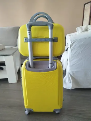 Maleta de viaje rígida con un diseño moderno y elegante. La marca no la se , he puesto una porque me obligaban a poner una. - Material resistente. - Cuatro ruedas para facilitar el transporte. - Asa extensible. Usada muy poco