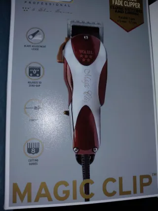Máquina cortapelos Wahl Magic Clip profesional. - Cuchilla de ajuste de palanca. - Ajuste a cero. - Guías de corte incluidas.