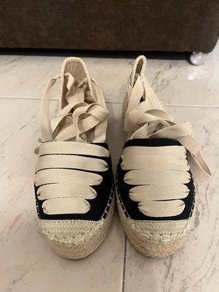 Alpargatas con un diseño elegante y atadas al tobillo. - Cierre con cintas. - Detalle de cordones en la parte delantera. - Suela de esparto.