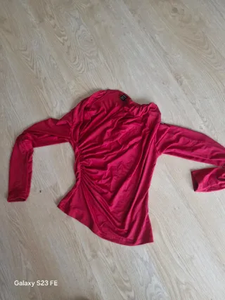 Camiseta de manga larga con un diseño moderno y favorecedor. - Tejido suave y elástico. - Detalle de drapeado lateral. - Cuello elástico.
