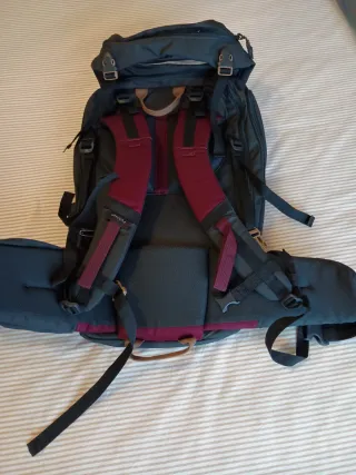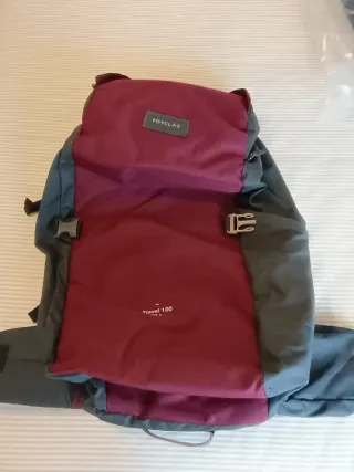 Mochila de senderismo Forclaz Travel 100 con una capacidad de 40 litros. Diseñada para ofrecer comodidad y funcionalidad en tus aventuras. - Correas de hombro acolchadas y ajustables. - Cinturón lumbar para una mejor distribución del peso. - Compartimento principal espacioso. - Bolsillos laterales de malla. - Con protector para la lluvia