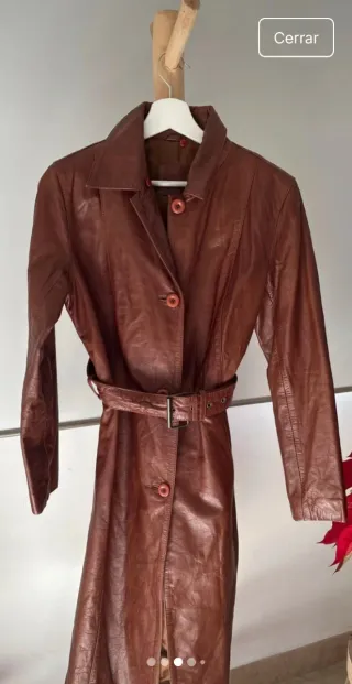 Abrigo largo de piel en tono marrón. Un clásico atemporal. - Diseño con cinturón. - Cierre de botones. - Cuello solapa.