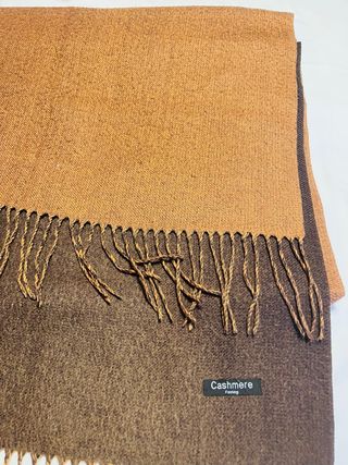 Bufanda de cashmere con un diseño en de marrones. Perfecta para añadir un toque de color a tus outfits. - Tacto suave y cálido. - Detalle de flecos en el borde.